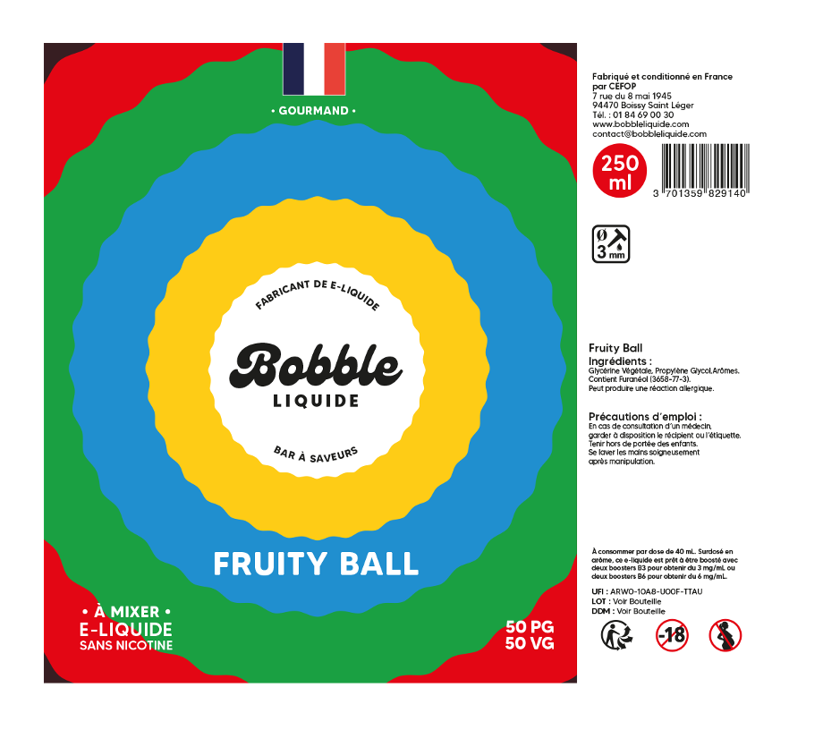 Repartez en enfance avec Fruity Ball, un liquide aux saveurs sucrées inspiré des célèbres billes gélatinées multicolores.